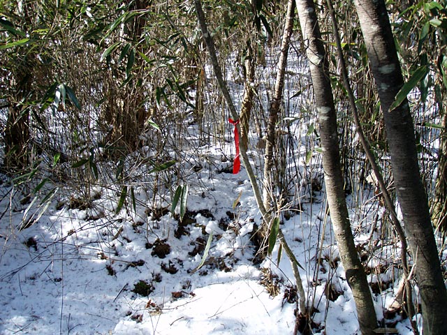 | 山ノ神尾根横断点登り側に赤布、新反射板入口か | ![]() |