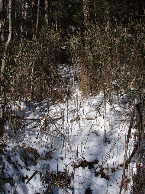 下りの笹藪廊下下泥斜面より長沢山方面 |