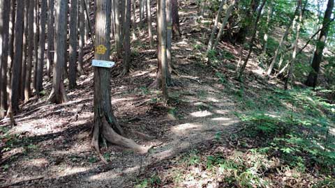 | 記録 | 今回も、熱中症リスク高い日であった。蜘蛛の巣を払いながらの登りは、辛い。冷たい飲料で、深部体温を冷やしながらの縦走となった。 【8月23日】 晴のち曇 武蔵五日市駅から、数馬行の西東京バスに乗る。道路の街路樹は百日紅で、ピンク色の花が見事だ。荷田子バス停で降りて、登山口へ向かう。荷田子峠までの登りは、小尾根に乗った辺りから、結構急になる。樹林帯の登りは、日は当たらないけれど、蒸し暑い。40分ほどで、峠に至る。ここまでは、順調だった。 縦走路に入ってからが、大変だった。藪っぽい所は蜘蛛の巣が張っていて、これが顔に掛かって鬱陶しいこと甚だしい。ストックで払いながら進むが、腕が疲れる。暑さも相まって、汗が噴き出す。熱中症対策で、水分を多めに担いでいるのも、足取りが重い原因だろう。 途中三回小休止を入れて、臼杵山まで予定より5割増しの時間を要した。この時点で、陣馬山までは無理そうだと思えた。兎に角、熱中症対策と荷を軽くするため、凍結ゼリーと、氷入り涼茶を飲む。深部体温が少し下がったのか、若干元気になる。これ以降、楽天の電波が殆ど届かなくなる。 石津窪山で小休止後、少し下った700M肩状辺りまで来ると、尾根の東面が伐採跡地になっており、苗木が植林されている。草刈機の音が煩い。この炎天下に作業する人たちも大変だろうと思う。樹林帯に入り、最低鞍部の620Mから少し行った、630Mで小休止する。 この休憩後に、何を錯乱したのか、もと来た道を辿って、先程の伐採跡地が目に入り、間違いに気付く。ヤバい、熱中症の症状だろうか。回れ右し、最低鞍部まで下って登り返す。そのまま頑張って、760M肩状まで登り、小休止する。それから」僅かな登りで、市道山山頂に至る。臼杵山から、予定の倍の時間が掛かったことになる。 市道山から少し下って、醍醐丸への縦走路を辿るが、楽天が使えないので、ドコモのデータSIMでメールを送る。ここからは、根性だけで頑張るしかない。小休止時間と間隔を短めにして、市道山から3時間弱で、見覚えのある醍醐丸山頂に至る。 醍醐峠までの下りが、もどかしい。峠で、念のためヘッドランプを装着しておこう。始めのうちは、はっきりしない道形も、すぐに明瞭になり、ぐんぐん下る。なかなか谷底に到達せず、気が急くが、やがて沢沿いの道となり、峠から43分で車道に出る。 17:09のバスは出てしまっているので、最終の18:24まで待つのか。少し休憩後、トボトボと和田バス停へ向かう。 |